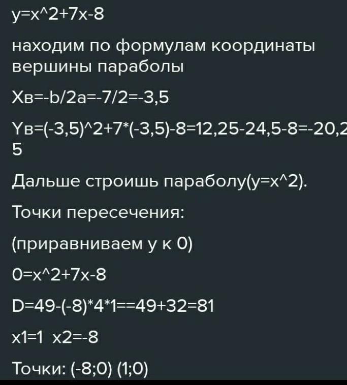 Даю 100 баллов постройте график функции y=x² + 7x -8 по графику определите точки которые лежат на оси Oy