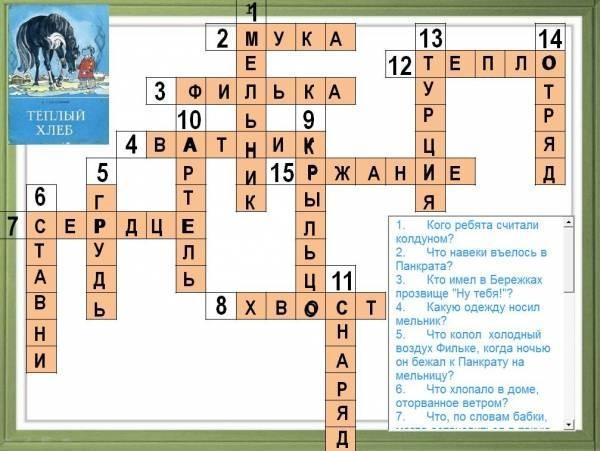 Кроссворд на сказку "Тёплый хлеб" чтобы в середине было имя Панкрат