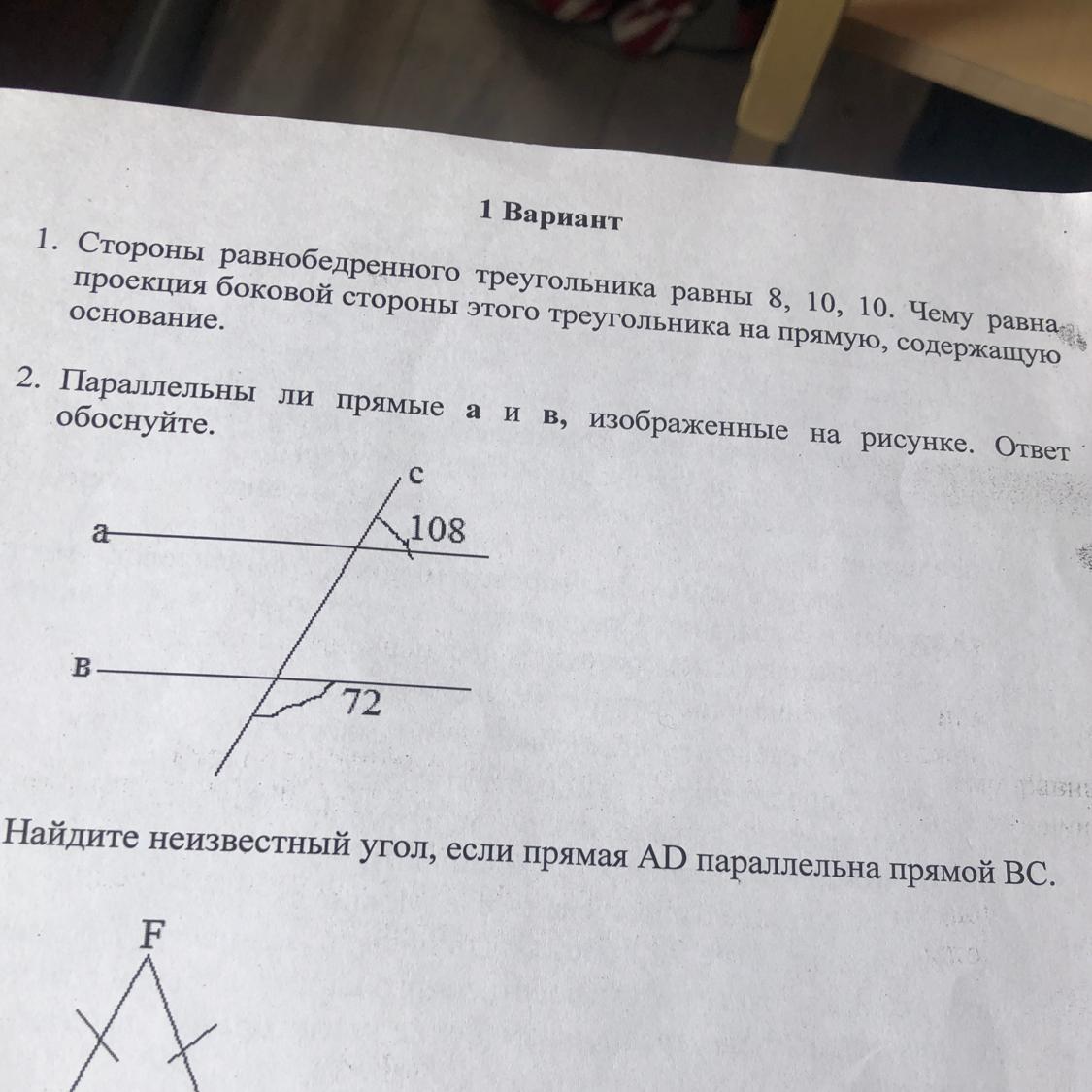Полученные углы будут односторонними, их сумма равна 108+72=180 градусов. Значит прямые а и b параллельны по признаку параллельных прямых (сумма односторонних углов равна 180 гр)
