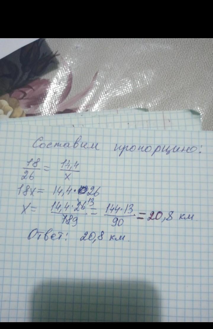 Механический одометр для велосипеда — прибор, который крепится на руле и соединён тросиком с редуктором, установленым на оси переднего переднего колеса. При движении велосипеда спицы колеса вращают редуктор, это вращение по тросику передаётся счётчику, который показывает пройденое расстояние в км. У Антона был велосипед с колёсами диаметром 16 дюймов. Когда Антон вырос ему купили велосипед с колёсами диаметром 20 дюймов. В воскресенье Антон поехал кататься. Когда вернулся однометр показал 13,2 км. Какое расстояние на самом деле проехал Антон?