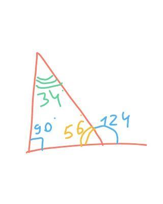 •внешний угол равен сумме двух других, не смежных с ним=> 124-34=90°(второй угол, не смежный с внешним)