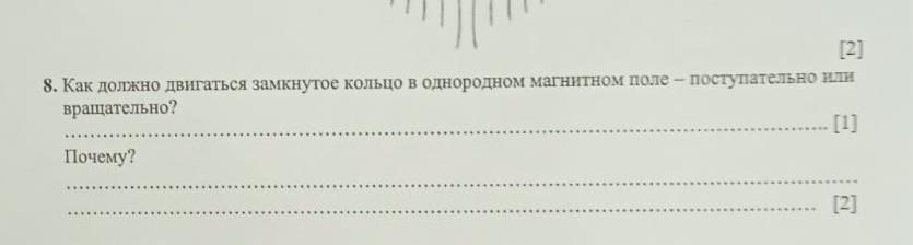 8. Как должно двигаться замкнутое кольцо в однородном магнитном поле - поступательно или вращательно? Почему?