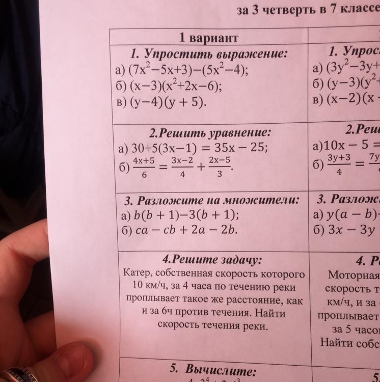 А) (7x^2-5х+3)-(5х^2 - 4) = 7x^2 - 5х+3 - 5х^2 + 4 = 2х^2 - 5х + 7
