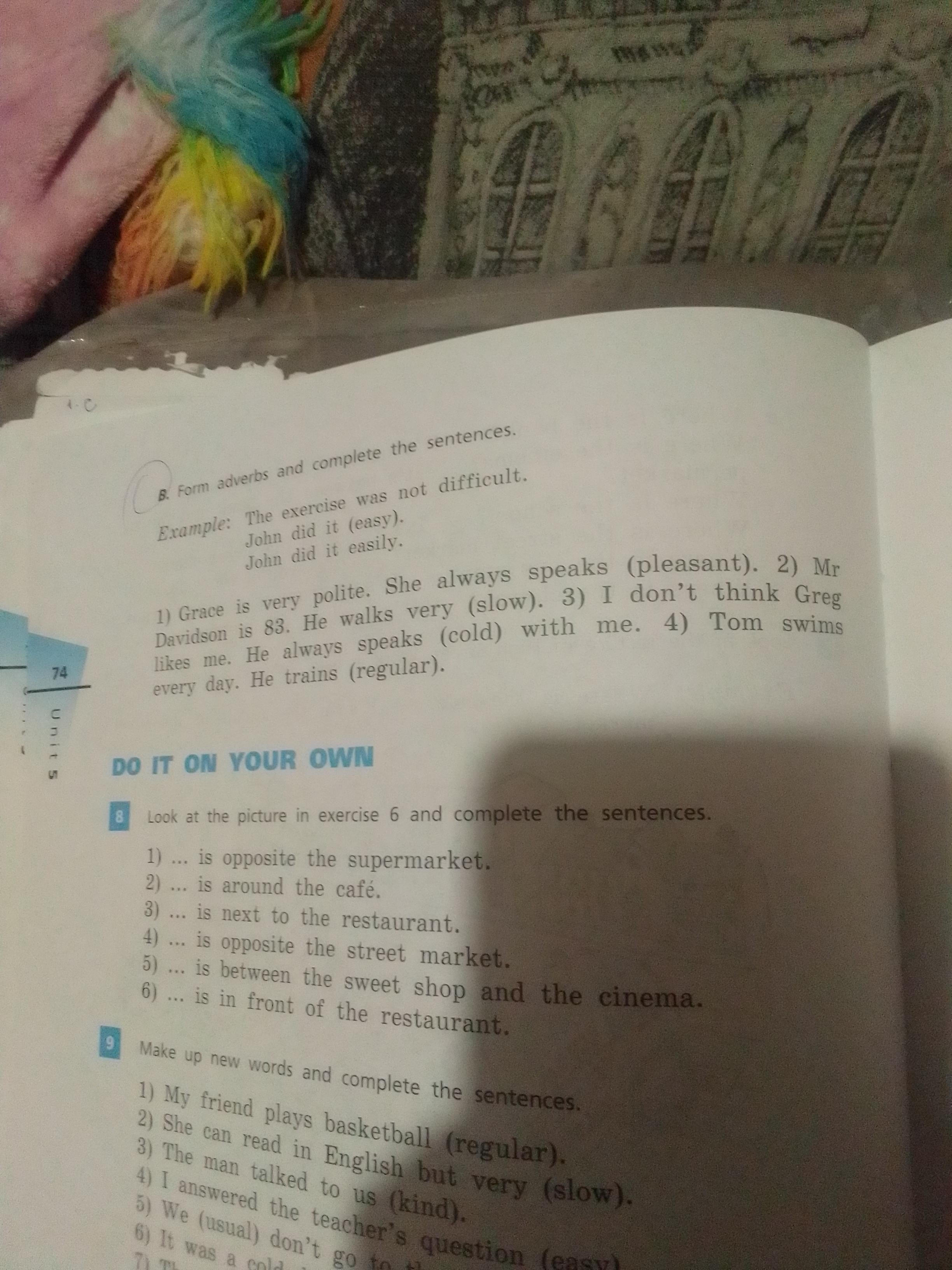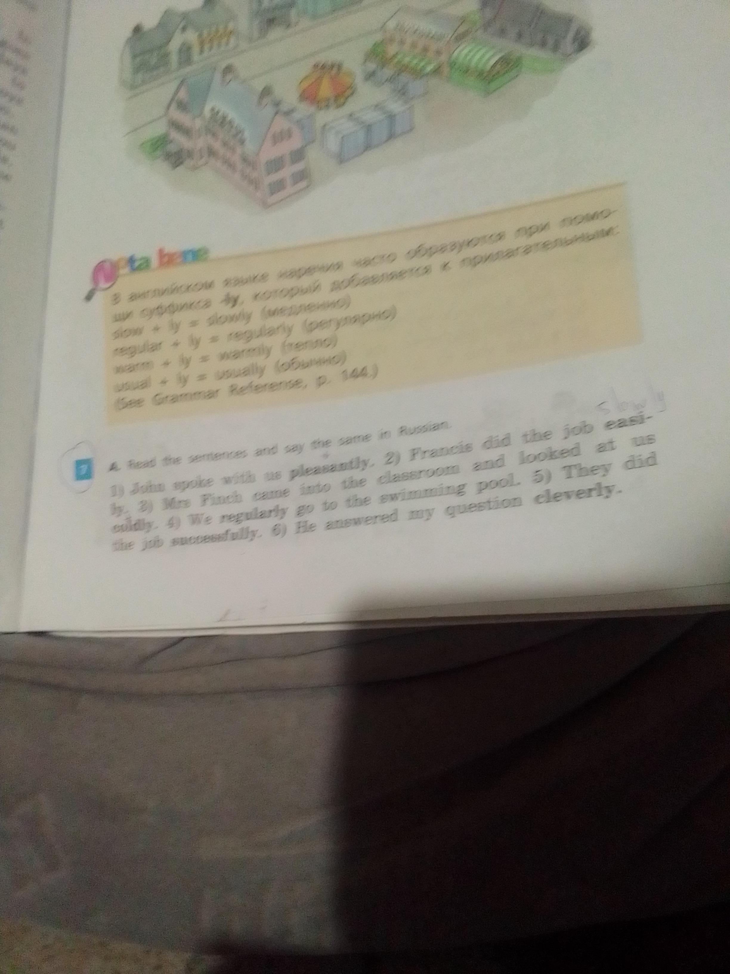 1. pleasantly. 2slowly 3.coldly 4.regularly