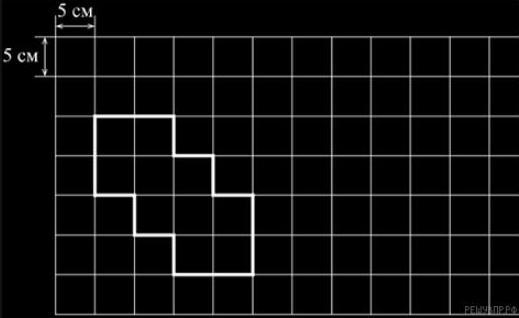На рисунке дано поле, расчерченное на квадраты со стороной 5 см. На нём изображена фигура.