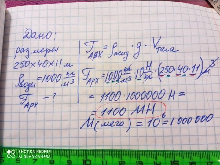 составляют 250х40х11 м. Определите, какая выталкивающая сила FA
