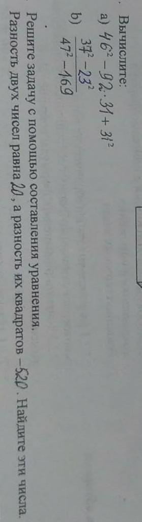 1) 46^2-92*31+31^2 = 46^2-2*46*31+31^2 =