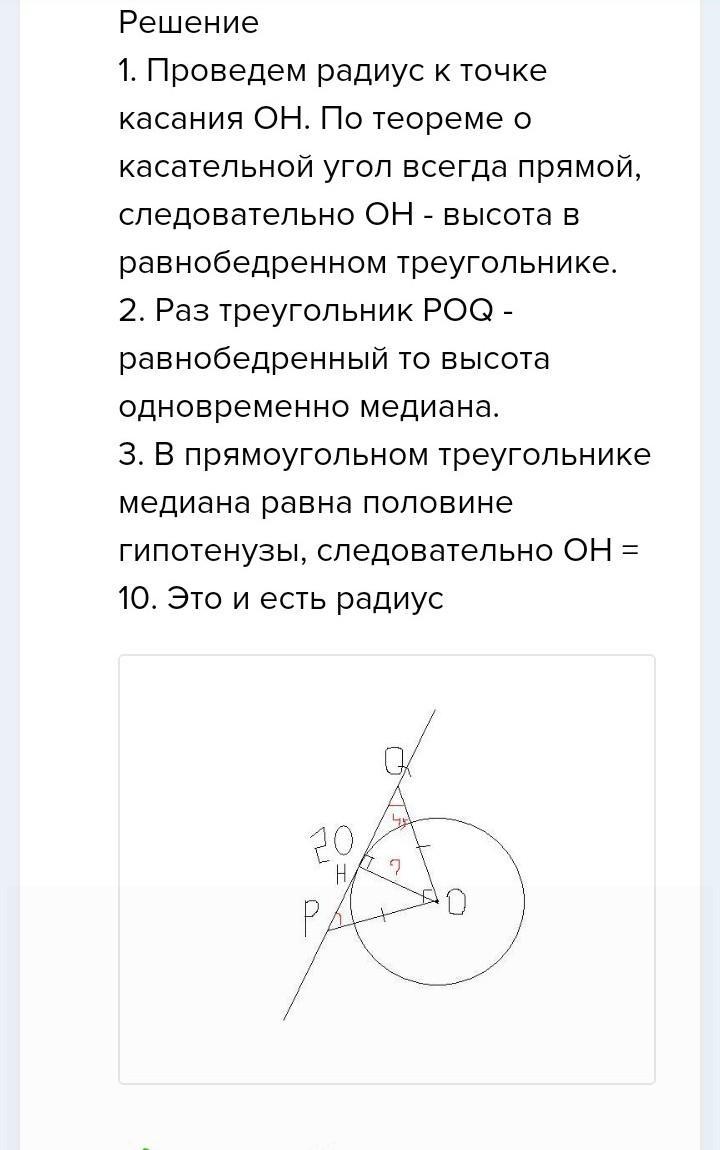 Найди длину отрезка PQPQ, если PL =20 PL=20, LO =30 LO=30, а прямая PQPQ — касательная к окружности.