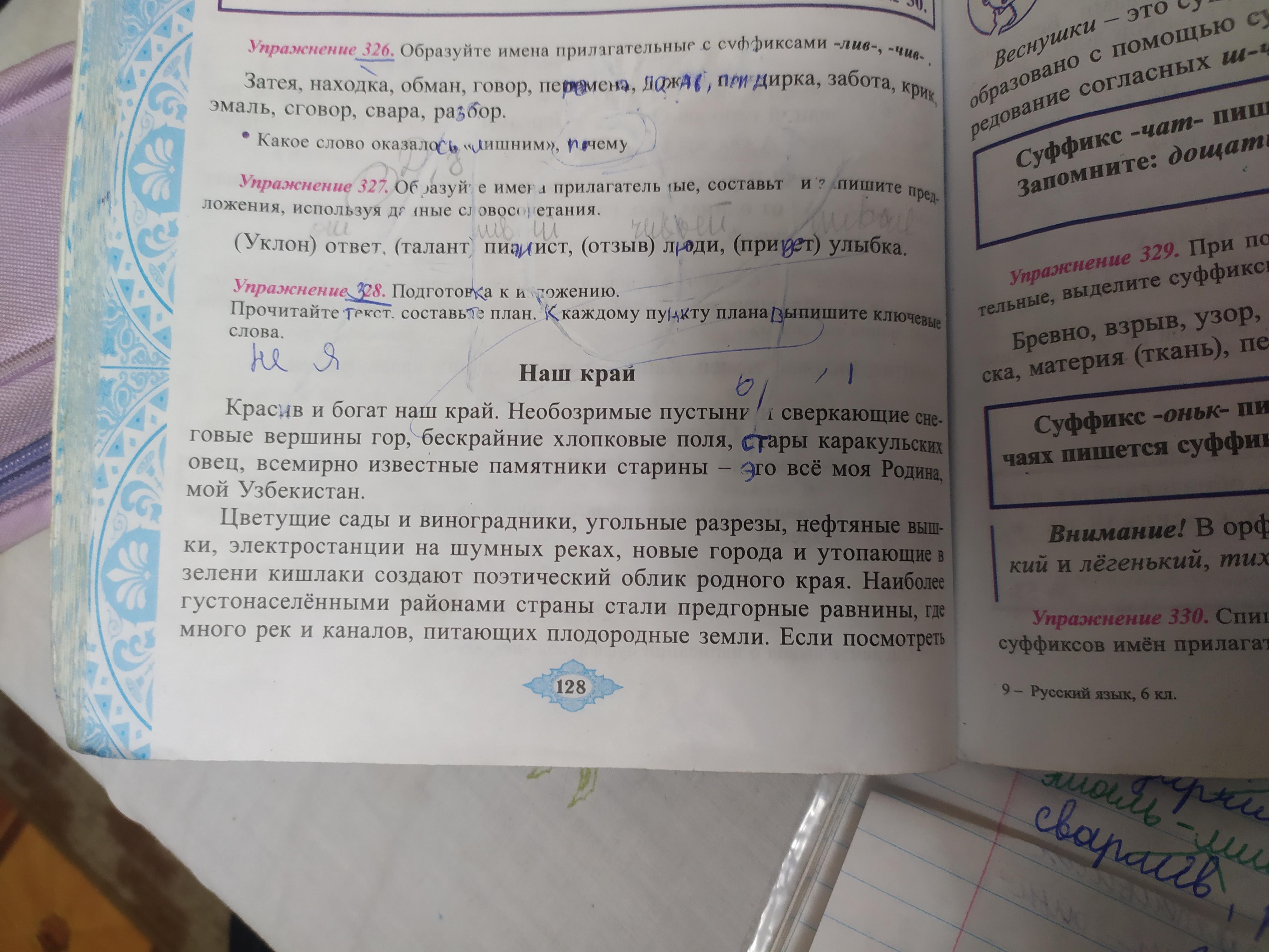 Упражнение 328. Прочитайте текст. Составьте план (обязательно). К каждому пункту плана выпишите ключевые слова