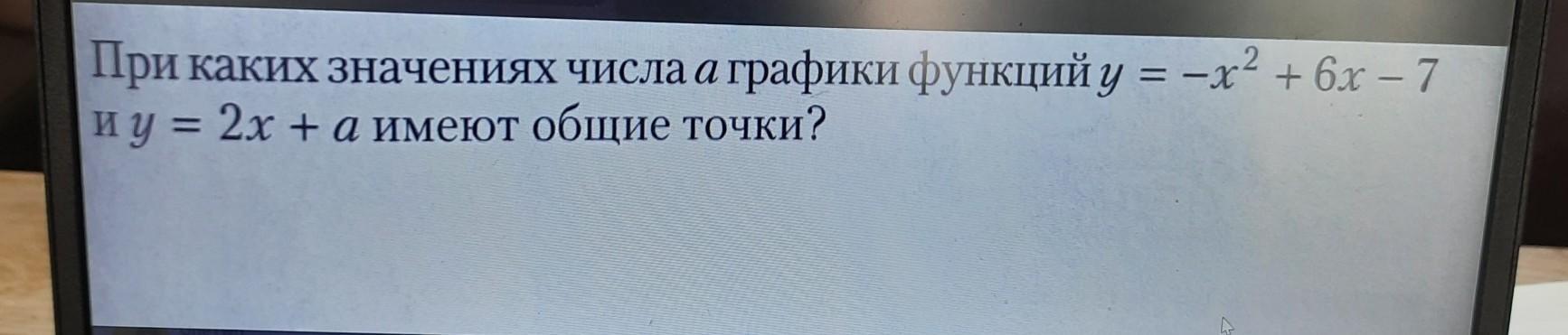 При каких значениях числа а графики функций у = -х2 + 6x — 7 и у = 2х + а имеют общие точки?