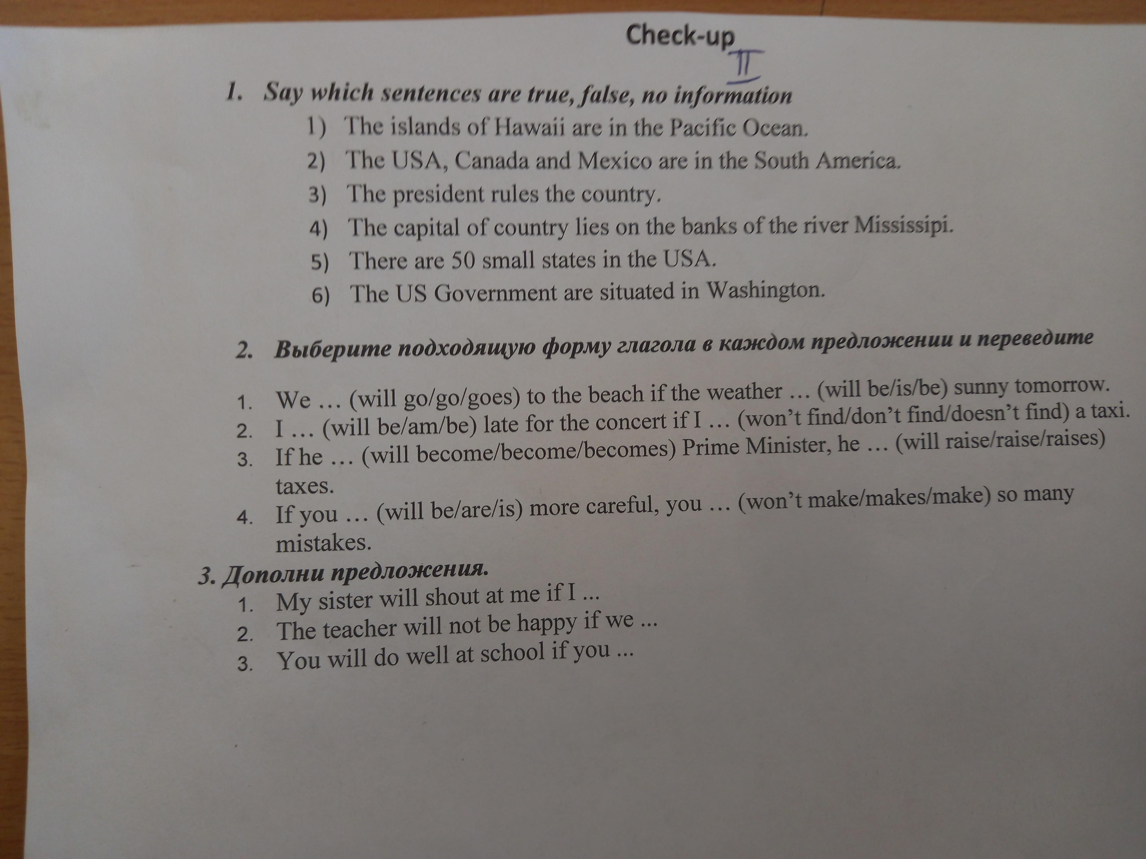1. We will go the the beach if the weather is sunny tomorrow