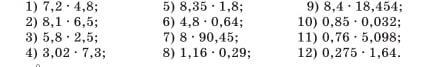 1)34,56 2)52,65 3)14,5 4)22,046 5)15,03 6)3,072 7)723,6 8)0,3364 9)155,0136 10)0,0272 11)3,87448 12)0,451