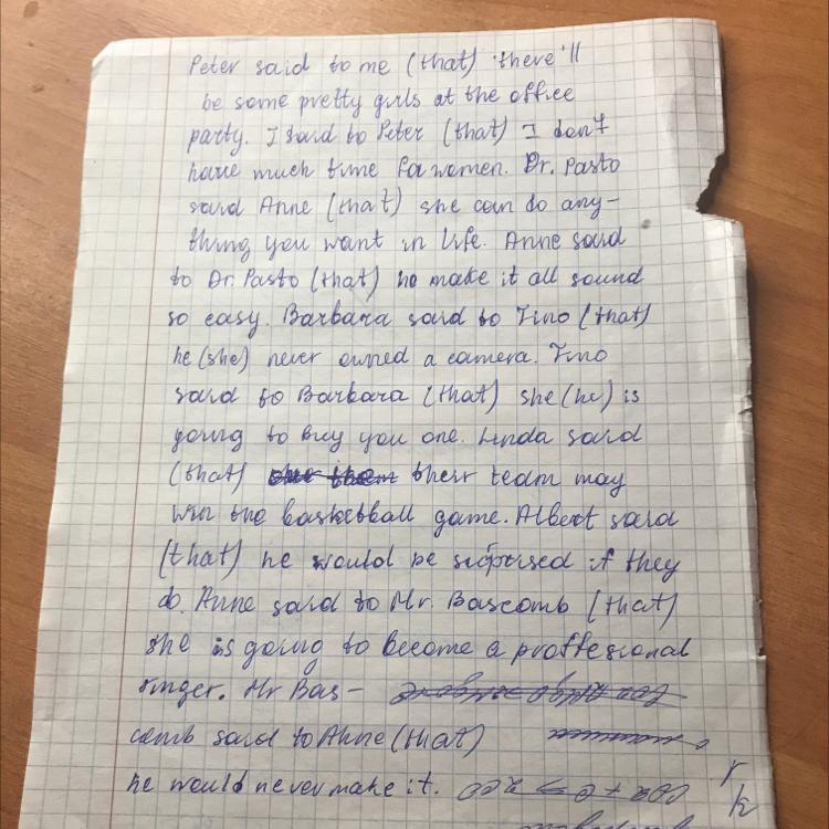 Write the following sentences using reported speech.