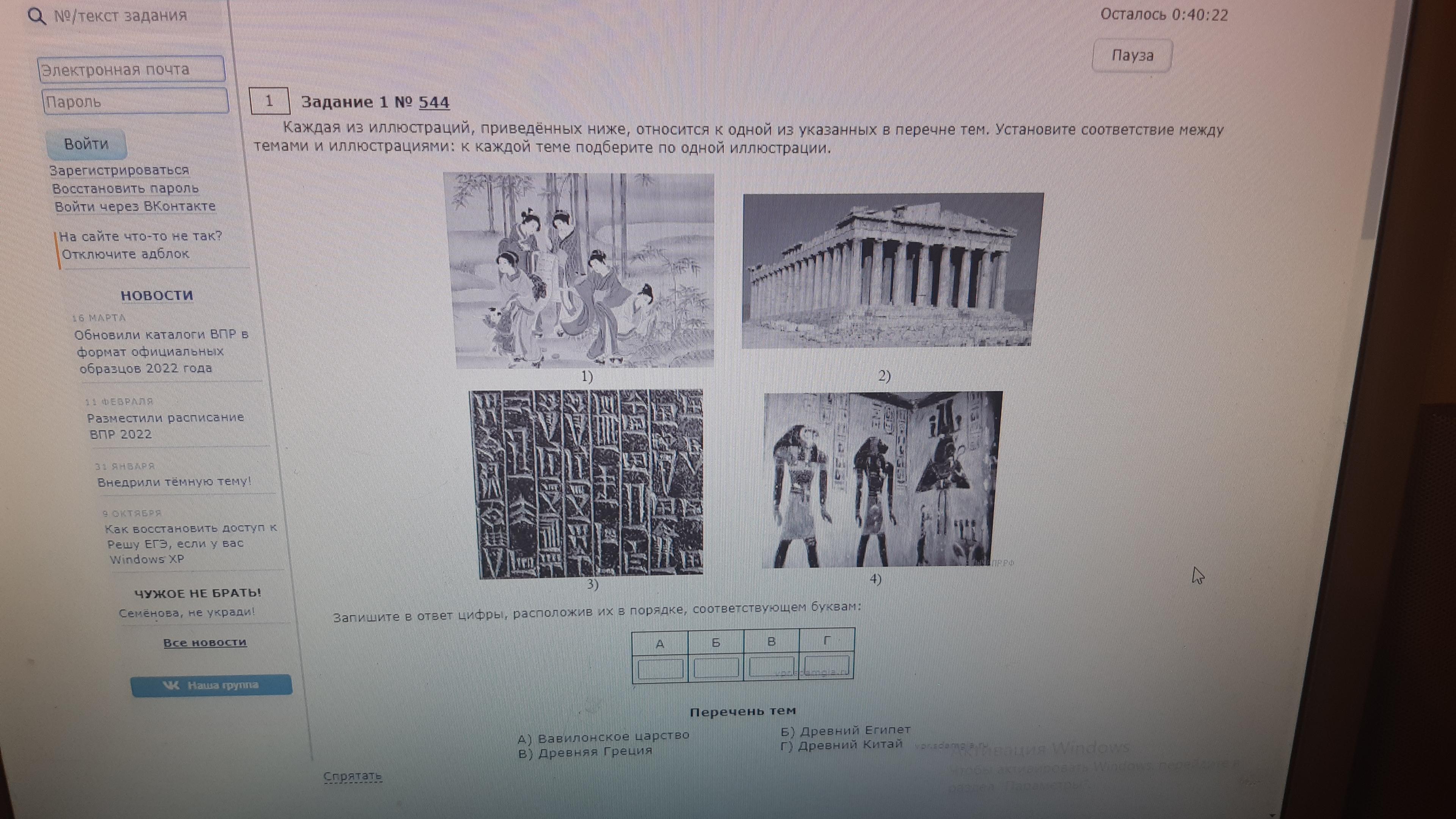 Каждая из иллюстраций, приведеных ниже, относится с одной из указанных в перечне тем. Установите соответствие между темами и иллюстрациями и каждой теме подберите по одной иллюстрации