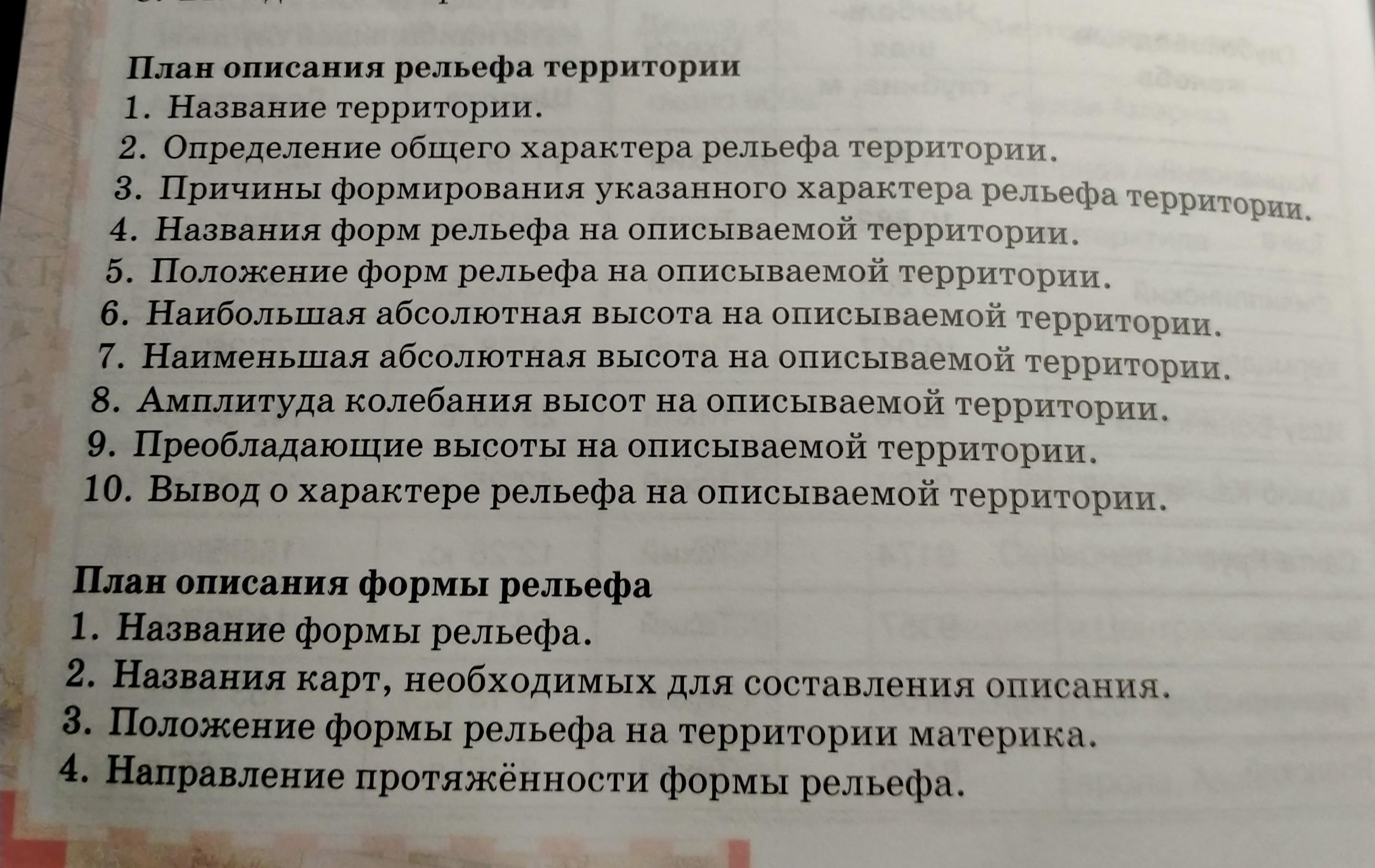 Составьте описание рельефа разных частей материка, используя план (на фото)