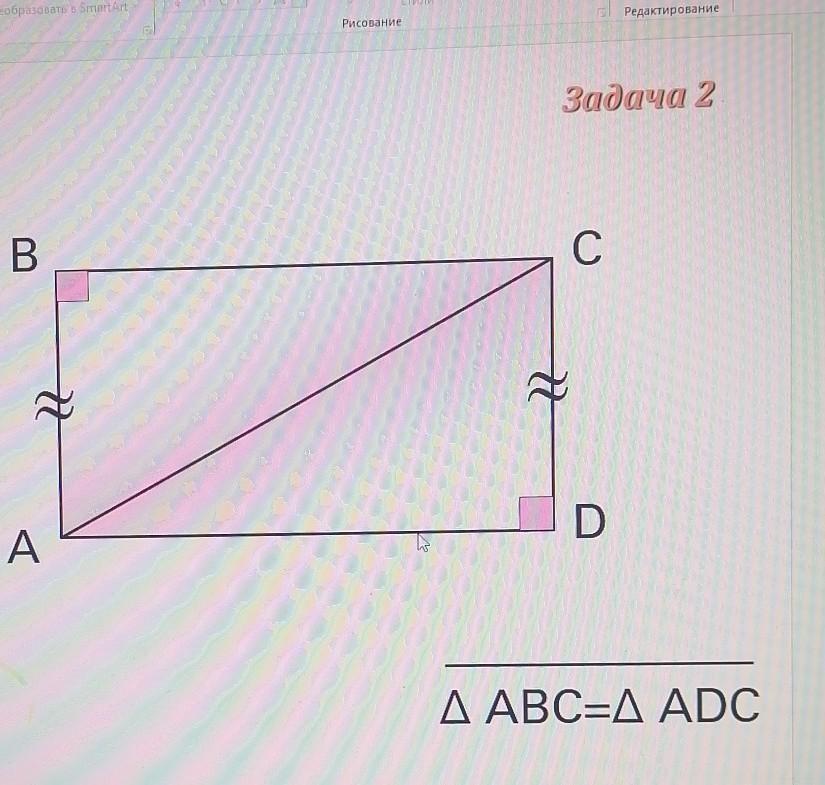 Рассмотрим тр. ABC и тр. ADC: AB = CD, AC - общая гипотенуза => тр. ABC = тр. ADC (по гипотенузе и катету), ч.т.д