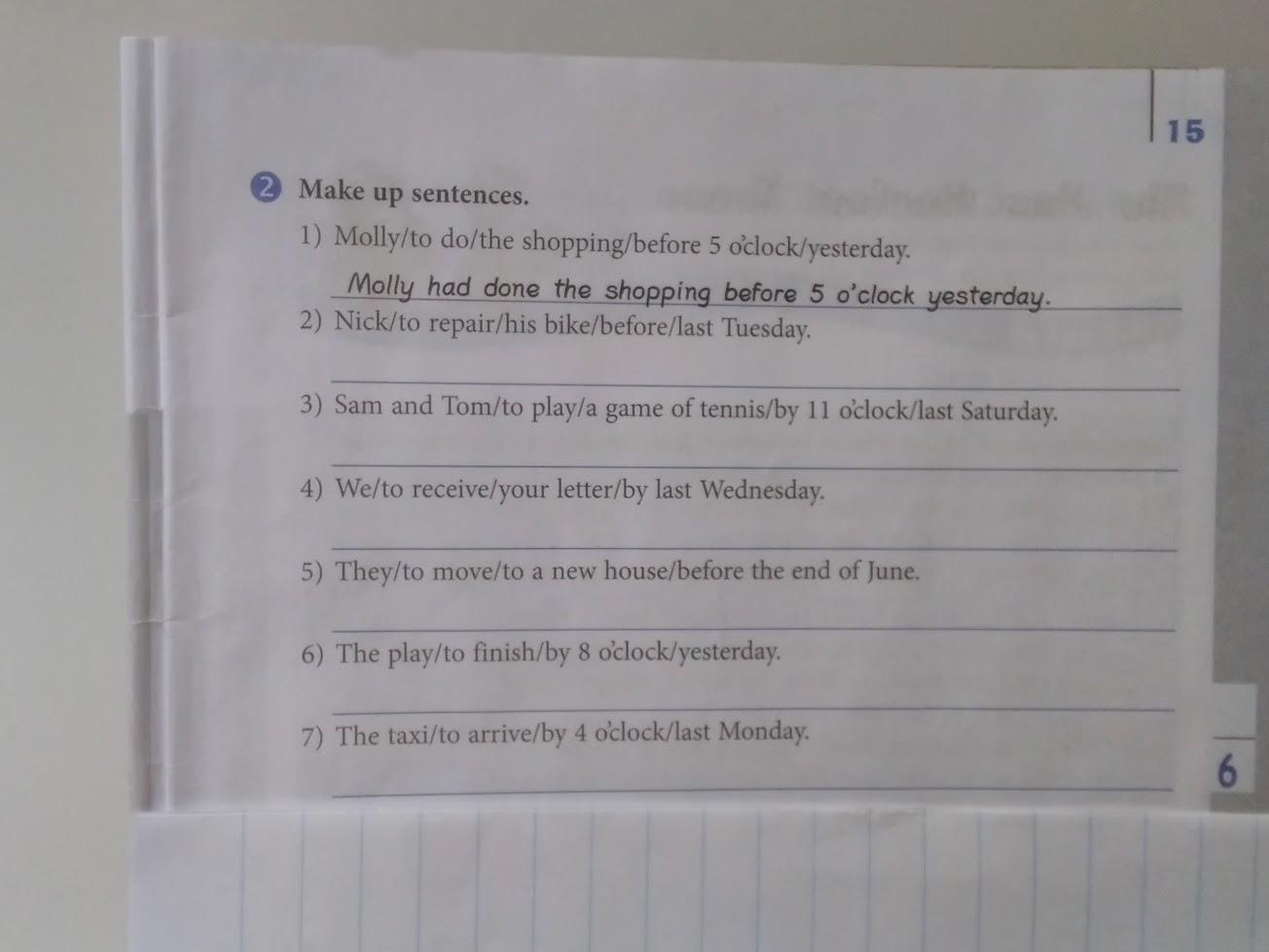 3) Sam and Tom had played a game of tennis by 11 o'clock last Saturday. 4) We had received your letter by last Wednesday.