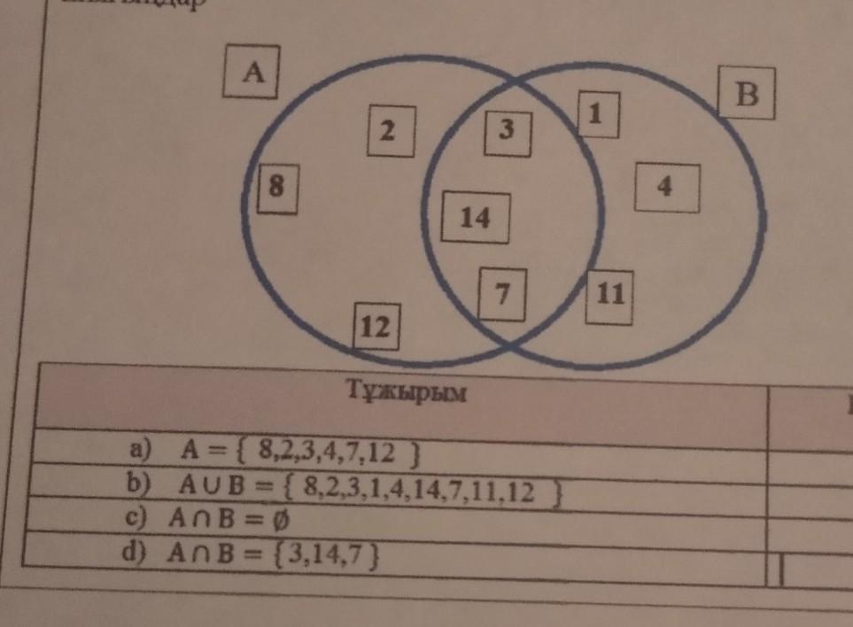 Значок ⋃ объединяет оба множества (перечисляют числа и из множества А, и из В)