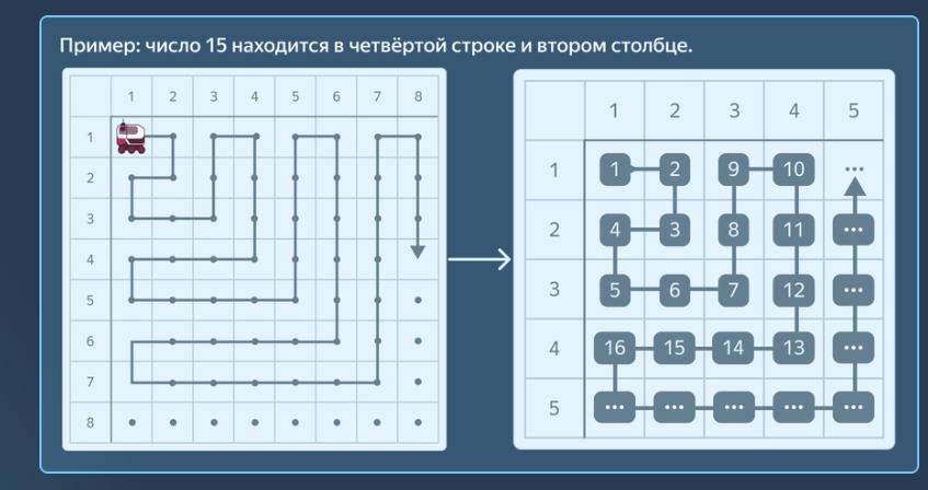 Помоги Васе узнать, в какой строке и каком столбце был ровер, когда он передавал сигналы?