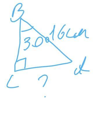 У прямокутному трикутнику гіпотенуза -16 см , а гострий кут 30°. Чому дорівнює катет?