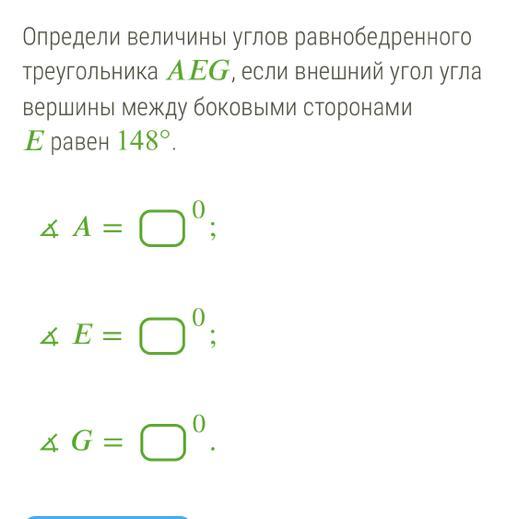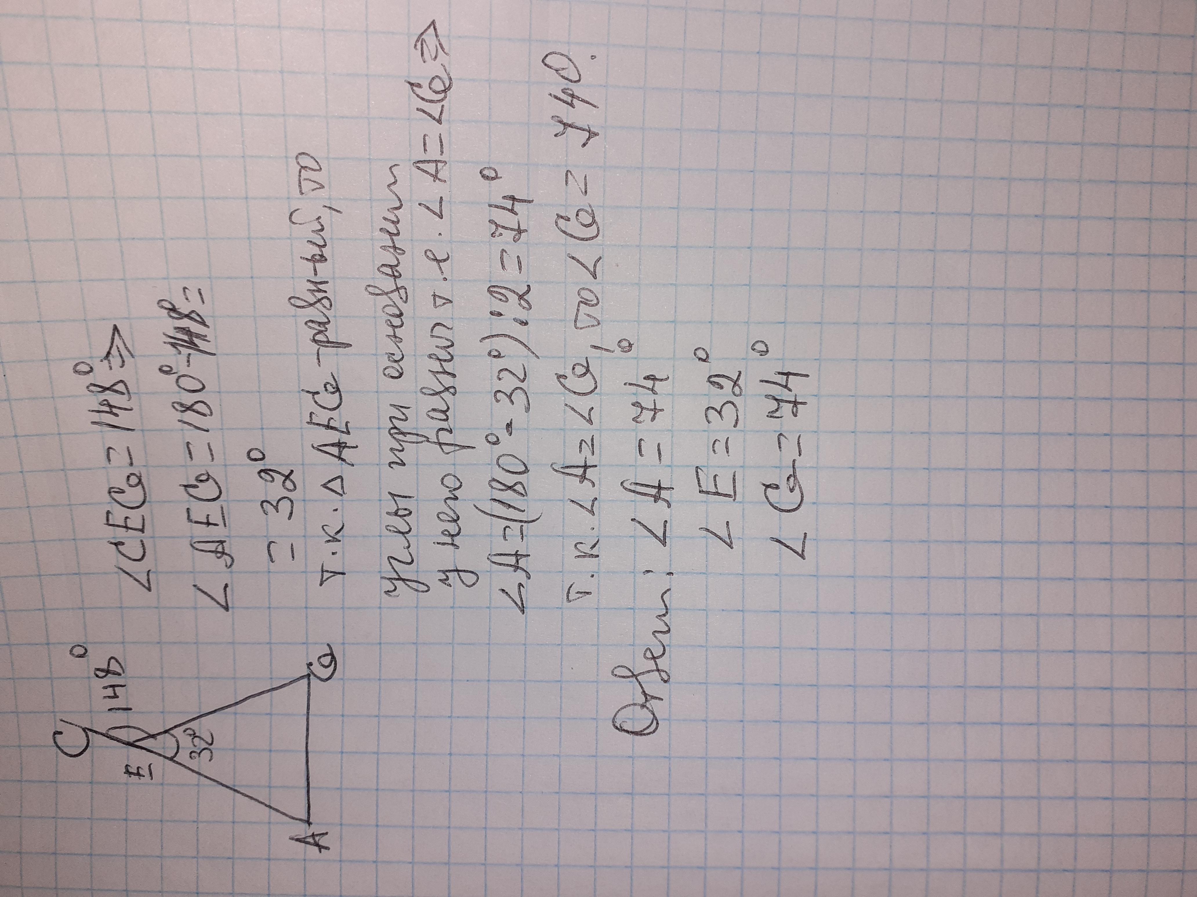 ∡А=∡G=148/2=74° - сумма двух углов треугольника равна внешнему углу треугольника не смежных с ними.