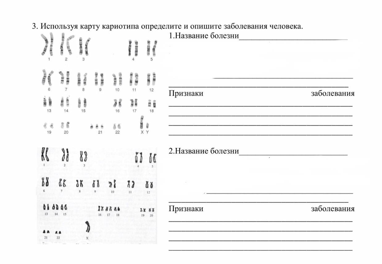 Используя карту кариотипа определите и опишите заболевания человека. 85 баллов даю! Срочно!!!