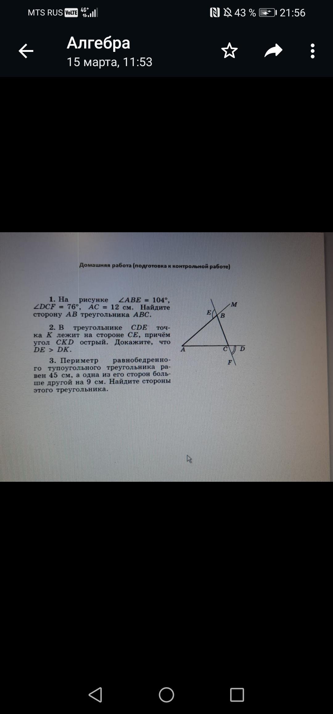 1 . ∠ABE = 104° , тоді ∠АВС = 180° - 104° = 76 ° ( власт. суміж.кутів ).