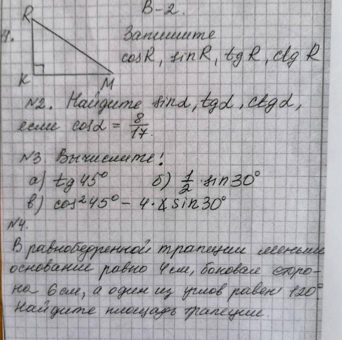 2)по косинусу понятно что один катет равен 8, а гипотенуза 17, по пифагору можно найти второй катет: х²+8²=17²