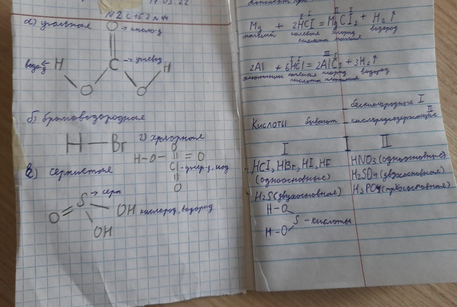 Составьте структурные формулы следующих кислот: а) угольной; б) бромоводородной HBr; в) сернистой H2SO3; г) хлорной HClO4. Проверьте выполнение этого задания у соседа по парте.