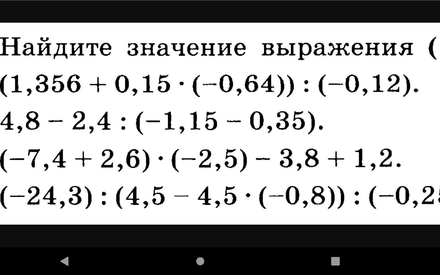 1) (1,356+0,15•(-0,64)):(-0,12)=(1,356-0,096):(-0,12)=1,26:(-0,12)=-10,52) 4,8-2,4:(-1,15-0,35)=4,8-2,4:-1,5=4,8+1,6=6,4