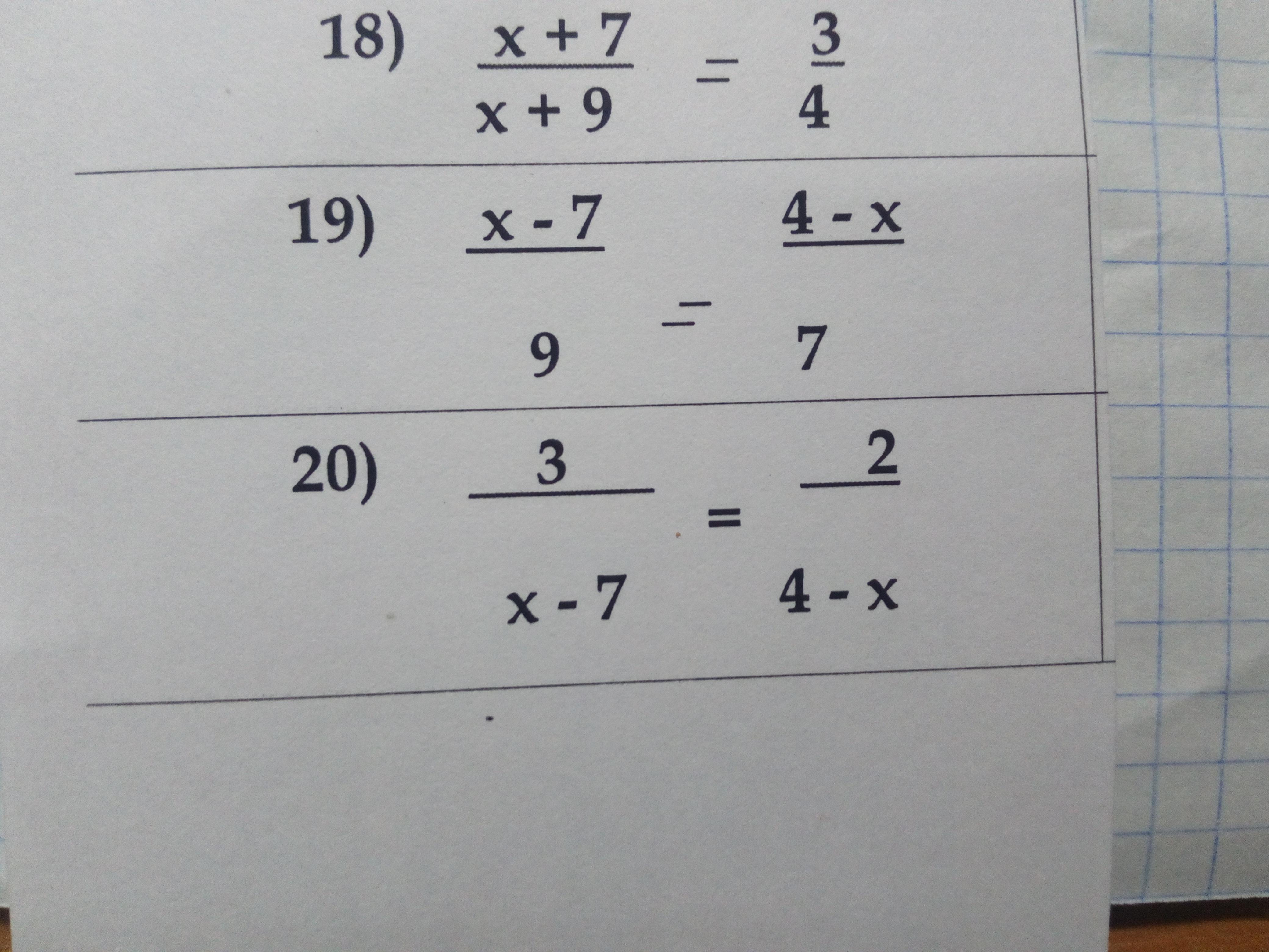 19)(x-7)/9=(4-x)/7; 7(x-7)=9(4-x)