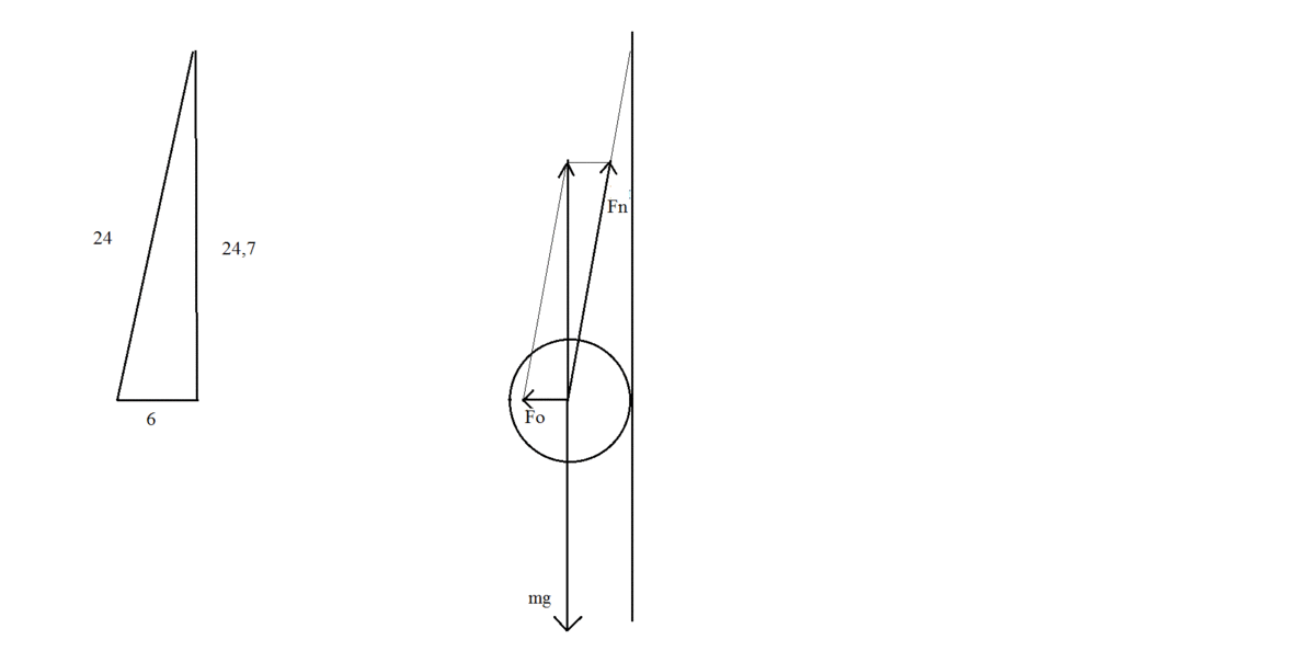 Сфера массой м=2.4 кг и радиусом r=6 см подвешена на нити длиной l=24 см,другой конец которой закреплён в некоторой точке гладкой вертикальной стены.Чему равны натяжение нити подвеса и сила,с которой сфера давит на неё?
