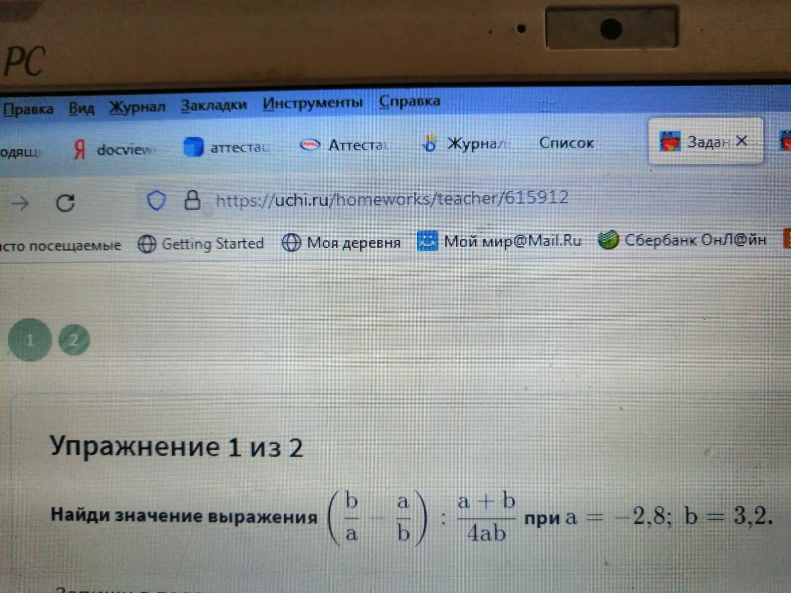 (b/a - a/b) : (a + b)/4ab = при а = -2,8; b = 3,2;