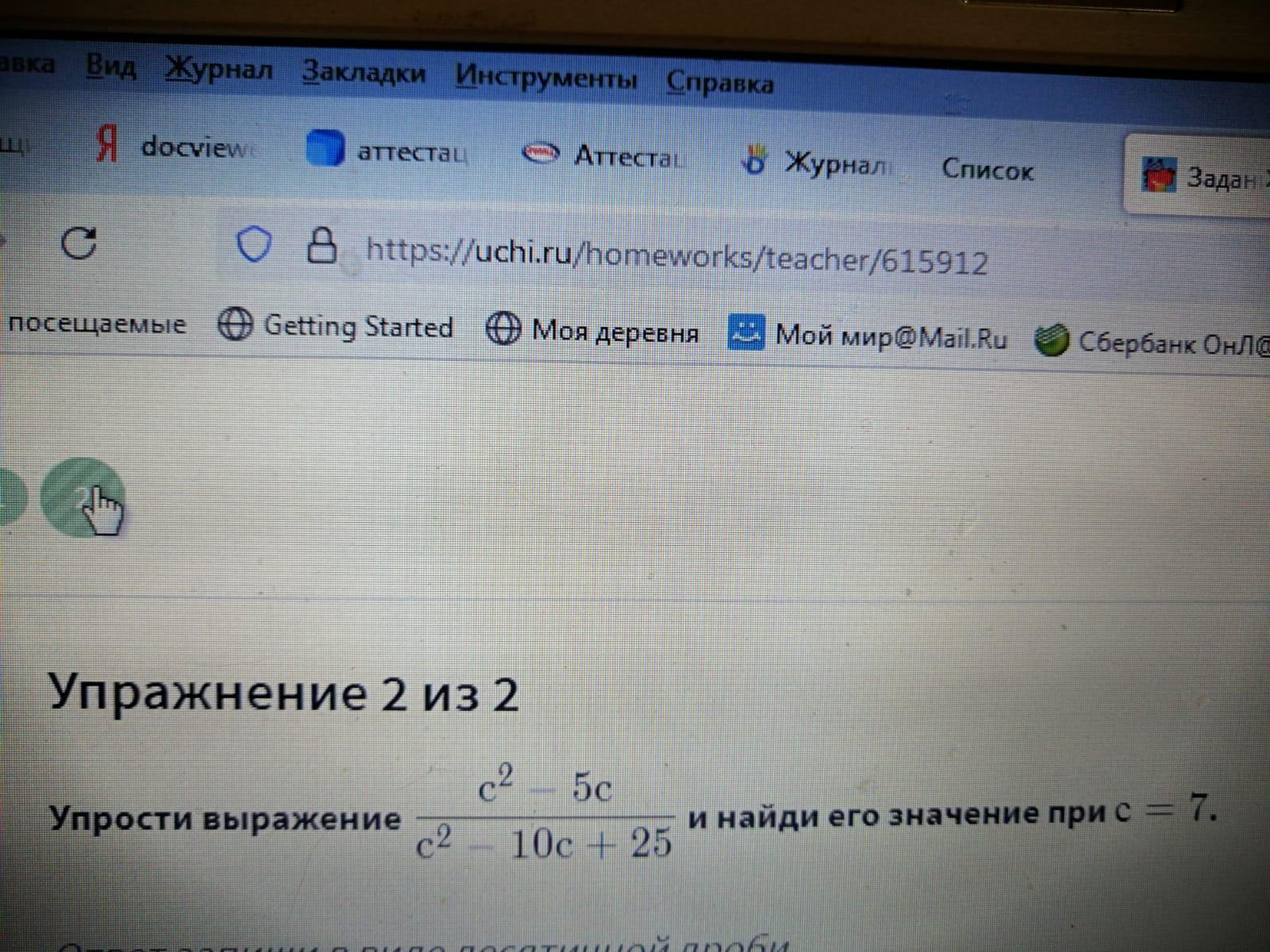 (с² - 5с)/(с² - 10с + 25) = при с = 7;