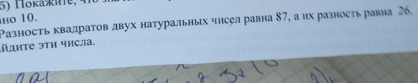 Разность квадратов двух натуральных чисел равна 81,а их разность равна 27. Найдите эти числа. НА ФОТО ЧИСЛА НЕПРАВИЛЬНЫЕ,ПРАВИЛЬНО БУДЕТ 81 И 27 !!!
