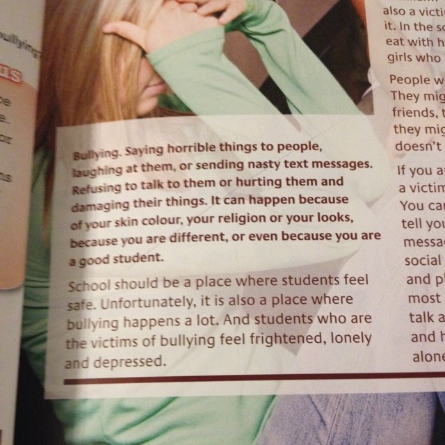 Школа- место, где ученики должны чувствовать себя в безопасности. К сожалению, это также место, происходит много издевательств. И ученики, которых унижают, испуганы, одиноки и подавлены.