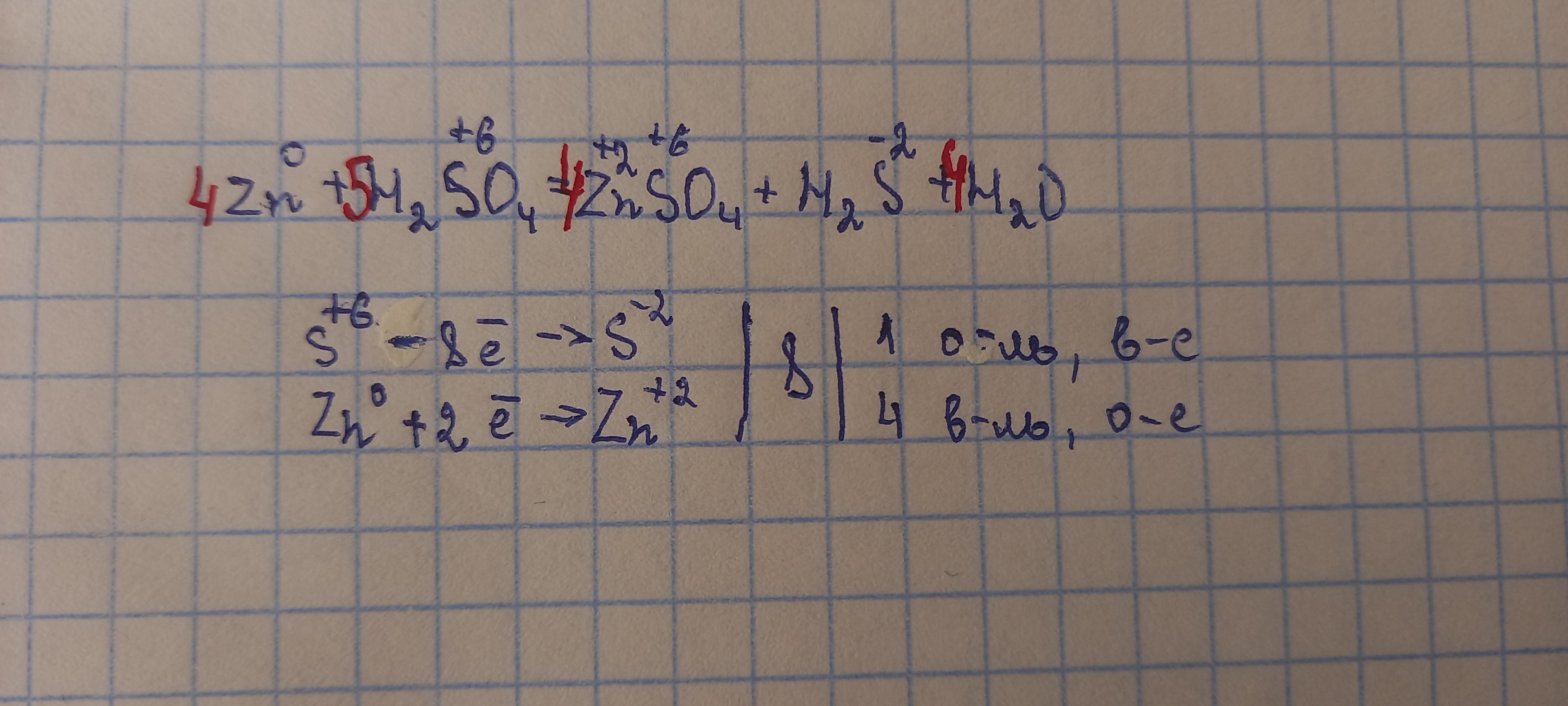 3. Составить электронный баланс, расставить коэффициенты для следующей реакции: Zn + H2 SО4 (конц) - Zn SO4 + H2S + H2O