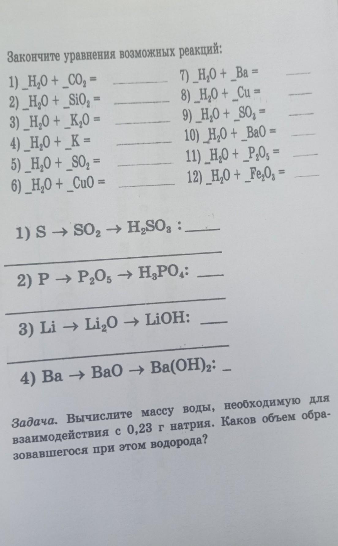7) Ba + 2H2O → Ba(OH)2 + H2