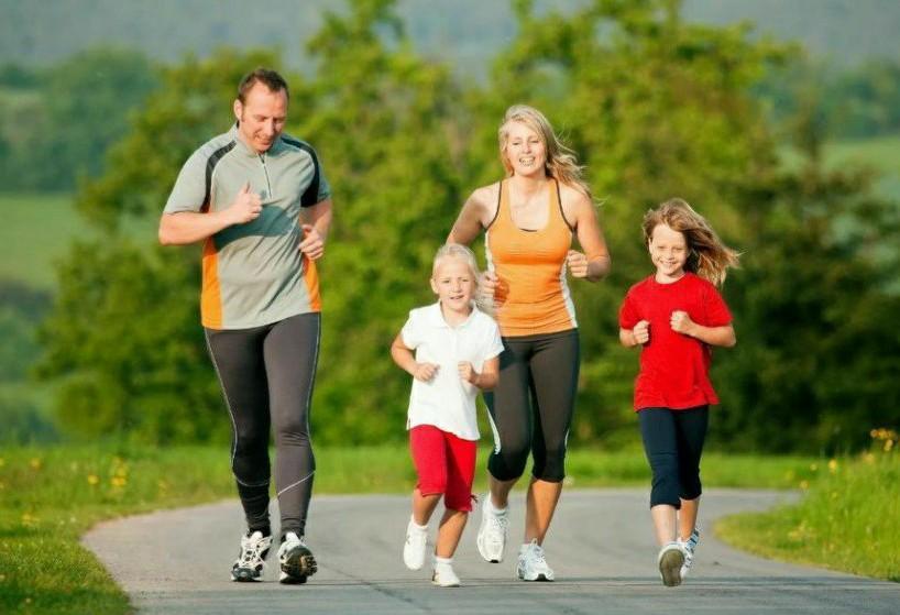 it s a very bright picture. in the background of this picture we see beautiful summer landscapes. but the image in the background is very blurry. In this picture I see four people. two of them are children. they're running somewhere. maybe they just went for a run.