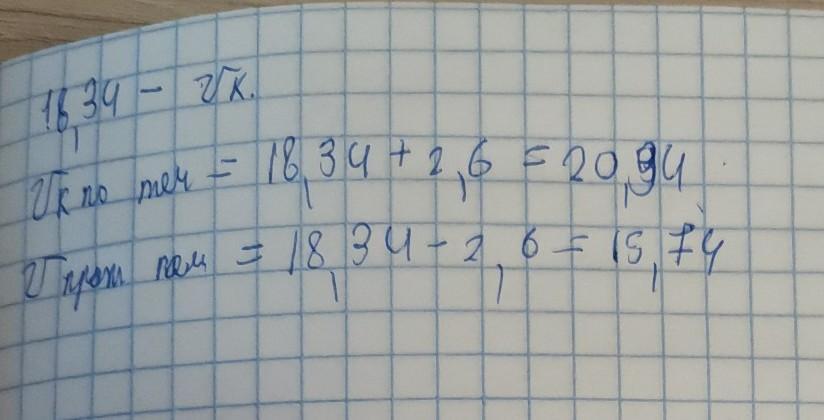 Собственная скорость катера 18,34 км/ч, скорость течения реки 2,6 км/ч. Найдите скорость катера по течению реки и скорость катера против течения реки.