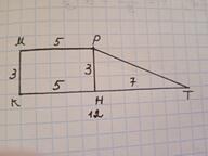 Проведемо висоту РН=3 см, тоды КН=МР=5 см, ТН=12-5=7 см.