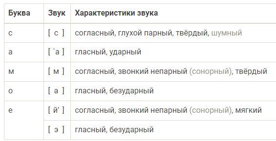 Самое [самай’э] – 5 букв, 6 звуков.