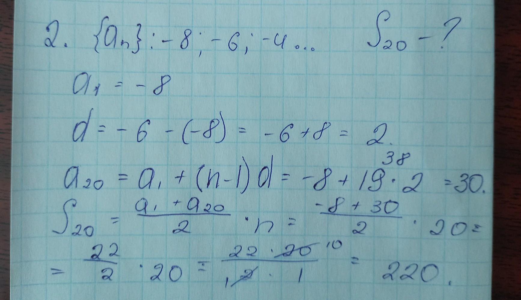 2. Знайдіть суму двадцяти перших членів арифметичної прогресії: -8; -6;-4…