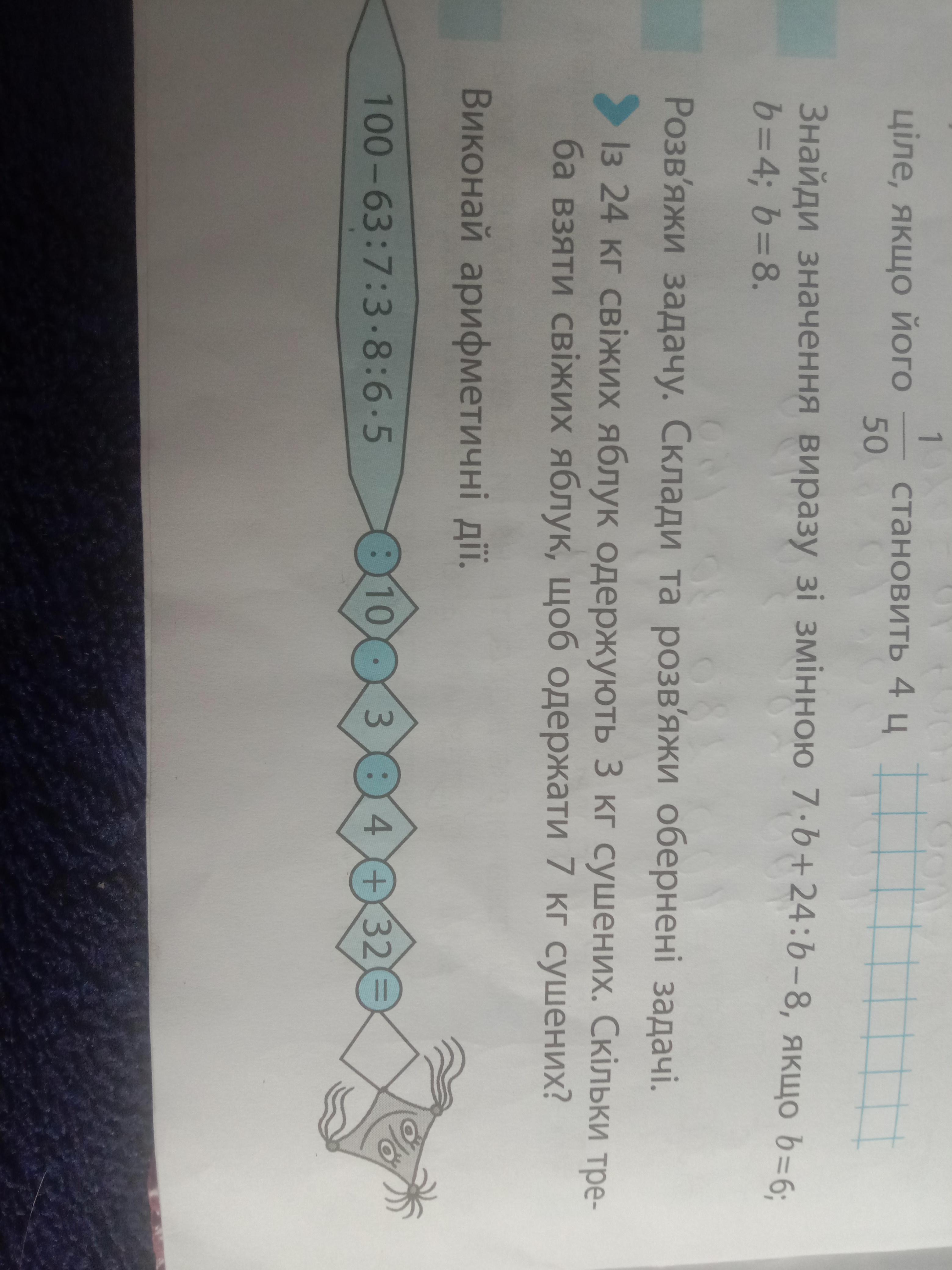 1) 24:3=8 (ми дізнались 1 кг сушених)