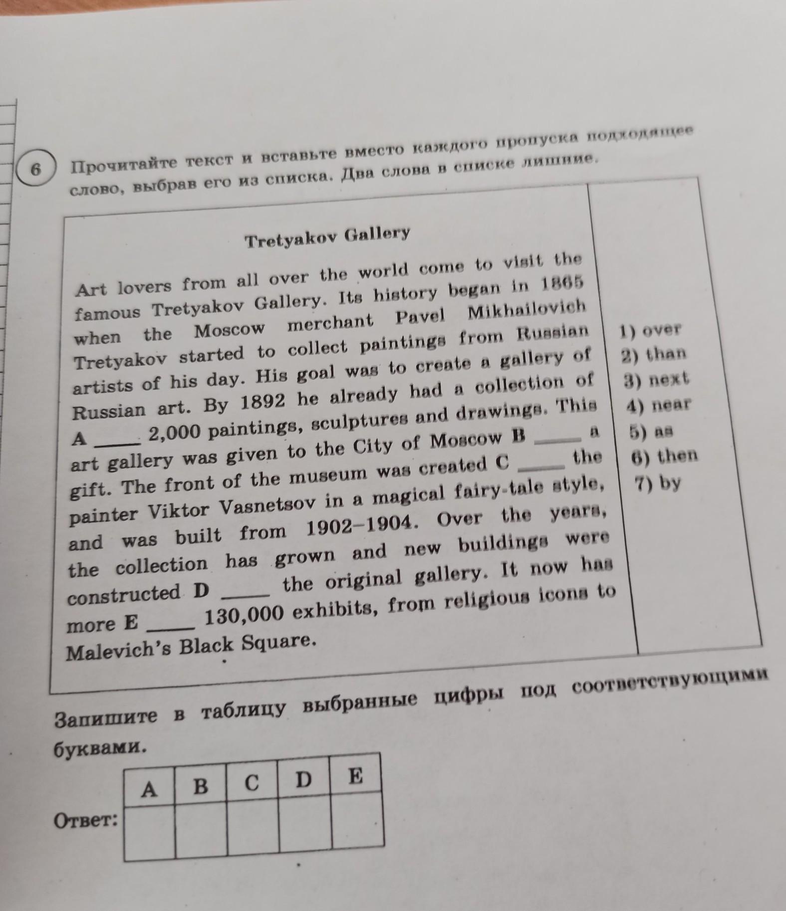 прочитайте текст и вставьте вместо каждого пропуска подходящее слово выбрав его из списка два слова в списке лишние