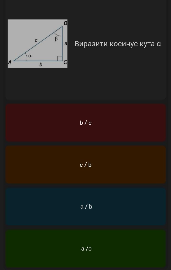 b/c так как косинус равен прилежавшая сторона/гипотенузу