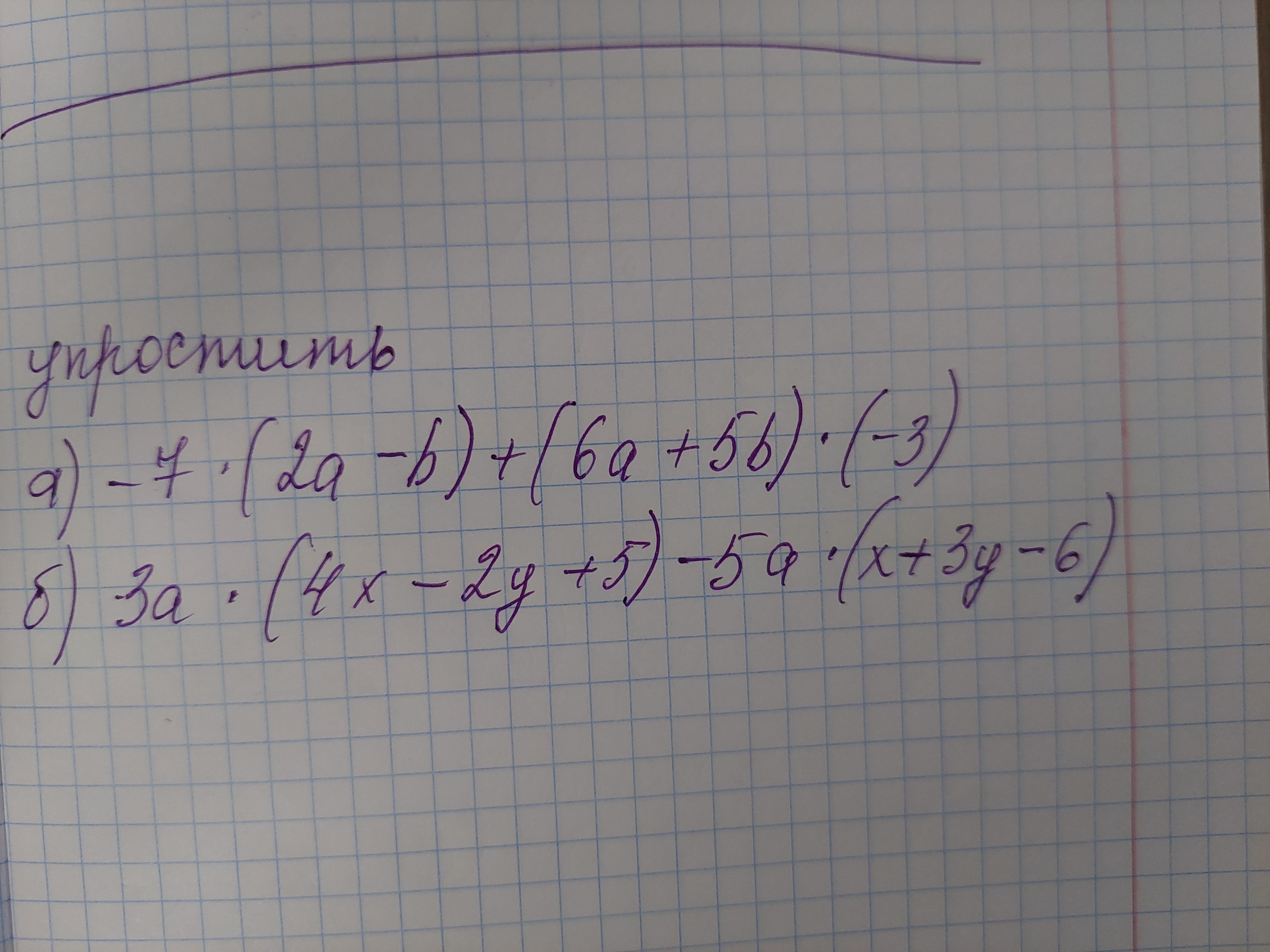 a) -7*(2a-b)+(6a+5b)*(-3)