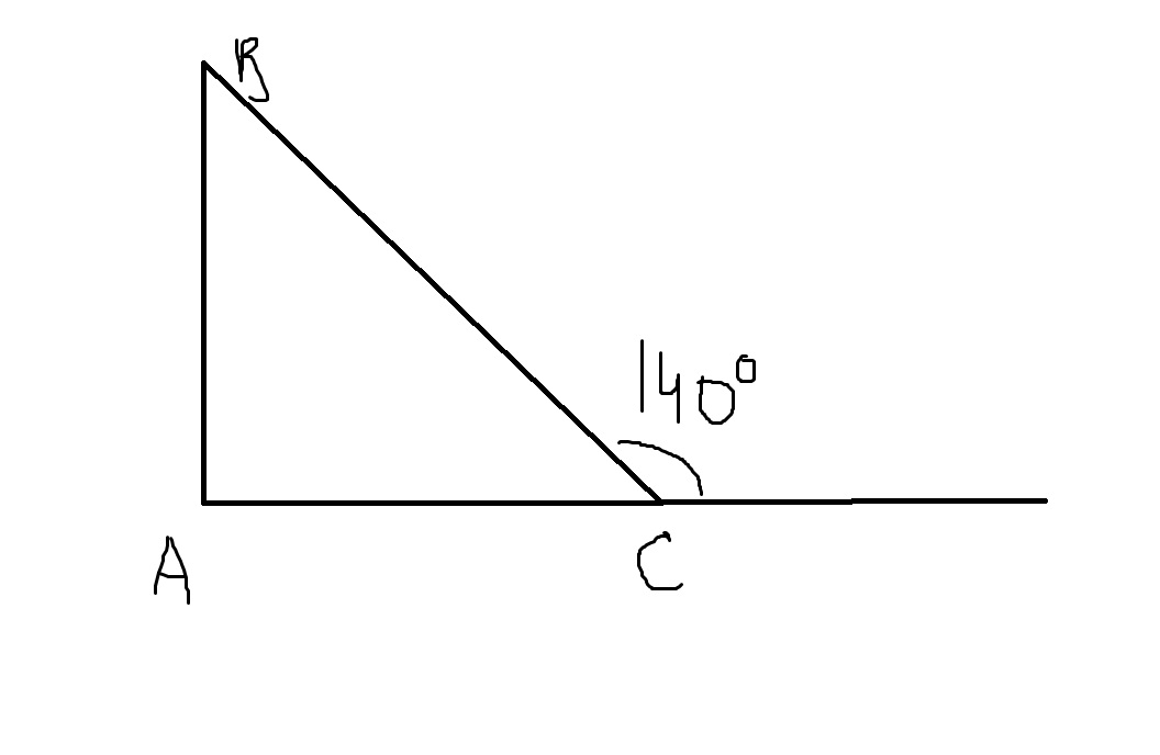 В прямоугольном треугольнике ABC один из внешних углов при вершине равен 140 градусов. Найти внутренние углы треугольника.