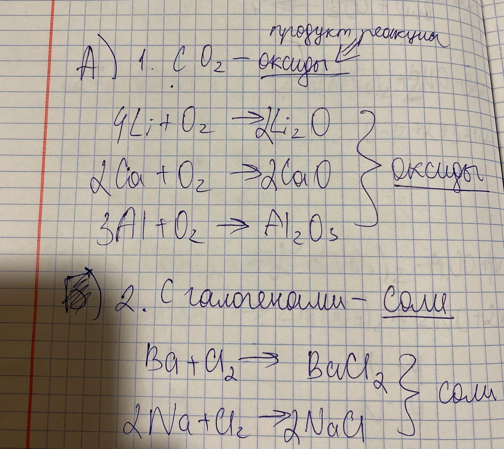 1 с кислородом (О2). Как называются продукты реакции? Записать уравнения реакций взаимодействия лития, кальция, алюминия с кислородом.