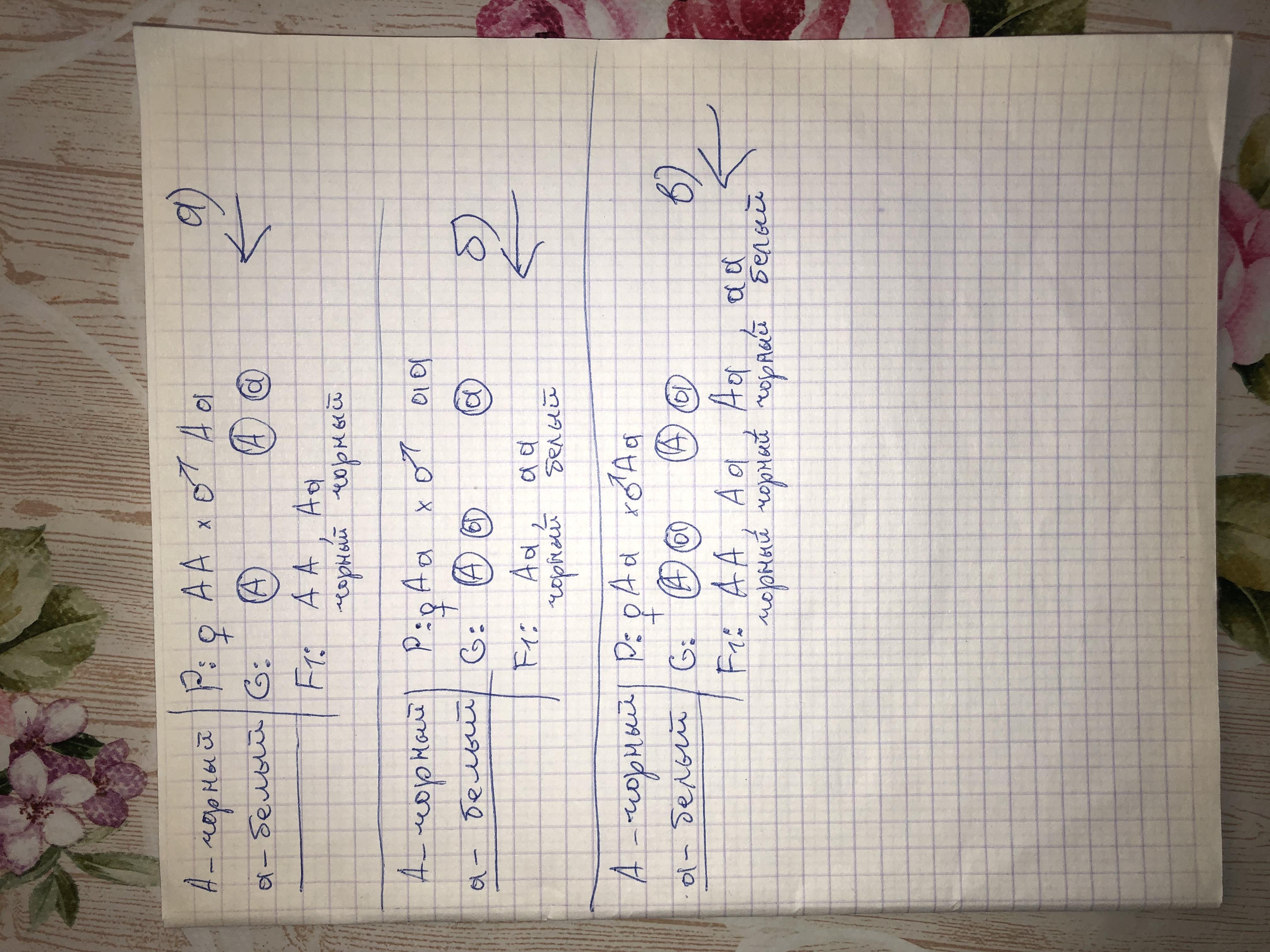 3. Чорний колір хутра домінуе над білим. Яке потомство за генотипом і фенотипом від таких схрещувань: а) AA x Aa; б) Аа х аа; в) Аа x Aa